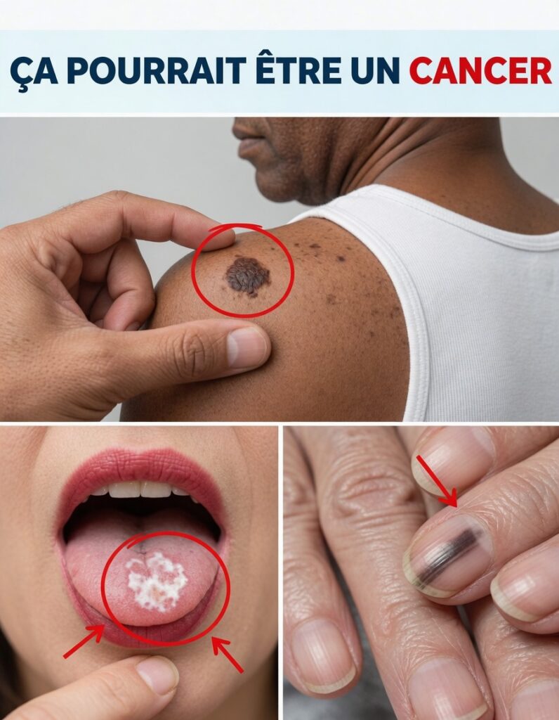 Un grain de beauté qui change (taille, forme, couleur) ou une lésion inhabituelle, surtout sur des zones exposées au soleil, doit attirer l’attention. La recherche générale insiste sur l’importance d’observer la peau régulièrement.