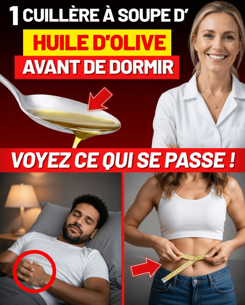 Prendre 1 cuillère à soupe d’huile d’olive avant de dormir offre une manière simple, naturelle et accessible d’apporter un soutien doux à vos soirées. Cette habitude réunit saveur, praticité et bienfaits potentiels dans un seul geste facile à adopter.