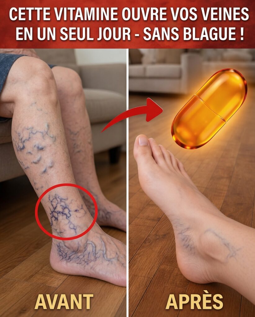 Après une longue journée, les veines tortueuses et saillantes sur les jambes peuvent devenir plus visibles. Avec elles arrivent souvent la sensation de lourdeur, des douleurs sourdes, des chevilles gonflées et une fatigue qui transforme même une simple marche ou une station debout en épreuve. En faisant défiler les réseaux sociaux, vous tombez sur une vidéo virale : une seule gélule lumineuse, des photos “avant/après” impressionnantes, et la promesse qu’une dose “ouvre” les veines pour une circulation fluide quasi immédiate. Tentant, surtout quand l’inconfort s’installe au quotidien.